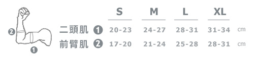 選購之前請您詳細測量您的手臂尺吋,若有一處落在較大尺碼區間,請選用較大尺吋即可。