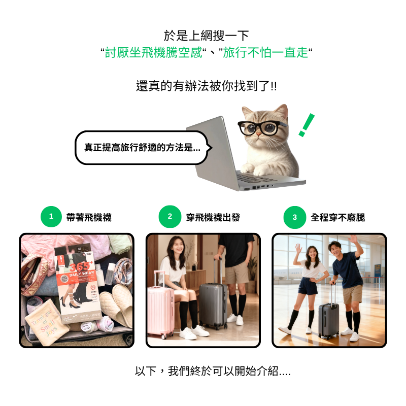 飛行時久坐、長途搭車,或旅行需要每日往返奔走及自助旅行時使用。 訂機票,即享旅程體感升等 向線上客服展示機票訂購成功截圖 (含訂單編號、航班號、日期、訂購人姓名) 即可取得單雙世界旅人飛機襪 8%優惠回饋券。*資料僅供確認不作他用。 以下網站訂機票: trip、ctrip、易遊網eztravel、skyscanner、易飛網ezfly、雄獅旅遊 liontravel、airpaz、expedia、 玉山票務、airbare go、webticket、捷星航空、長榮航空、中華航空、立榮航空、國泰航空、 台灣虎航、華信航空、樂桃航空、星宇航空、日本航空 以下旅行社訂機票: 五福旅遊、山富旅遊、東南旅遊、溫馨旅行社、燦星旅遊、永安旅遊、中天旅行社、太平洋旅行社